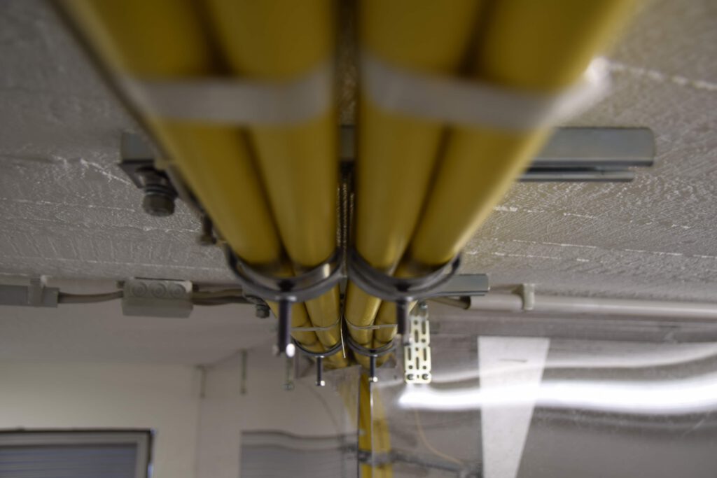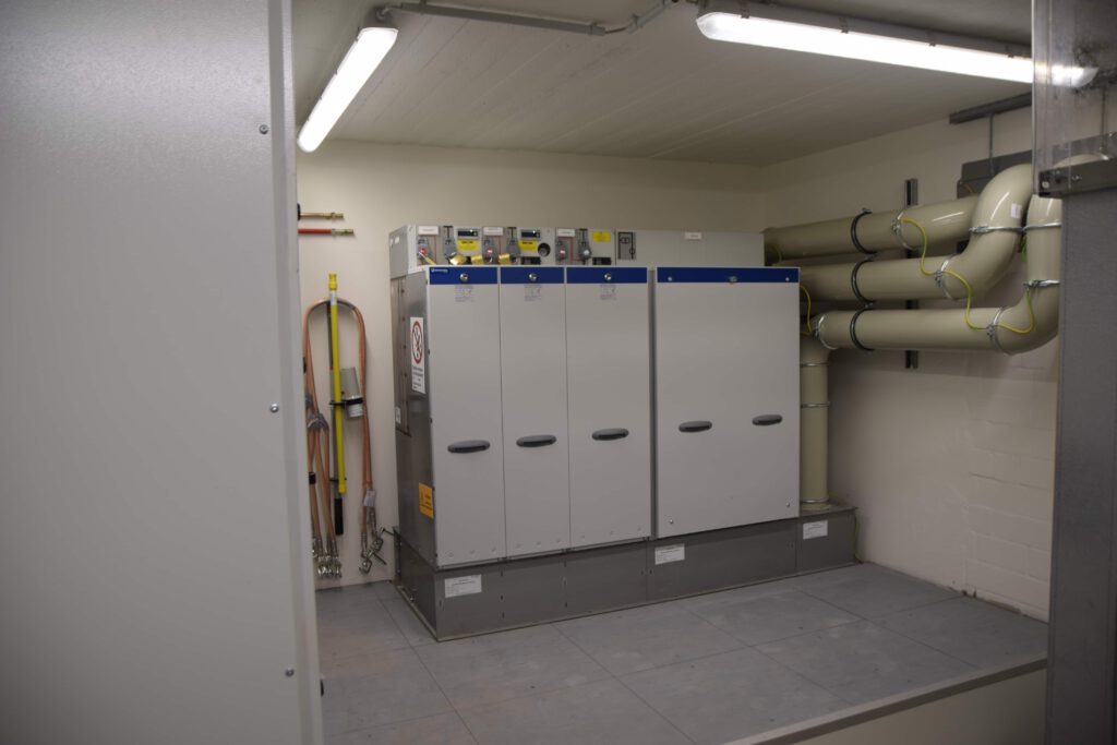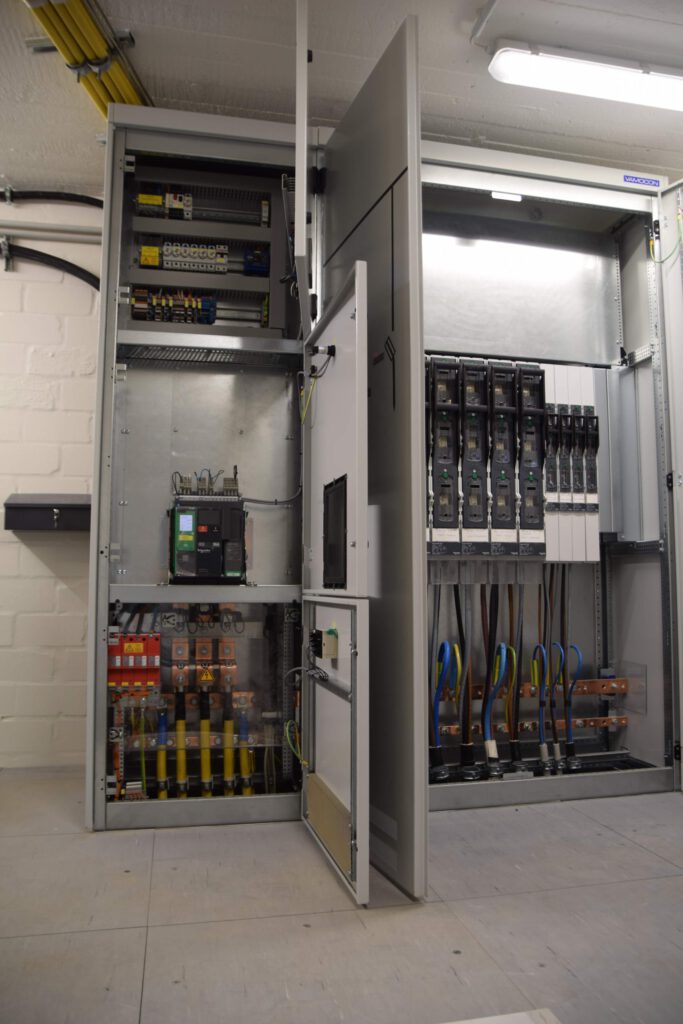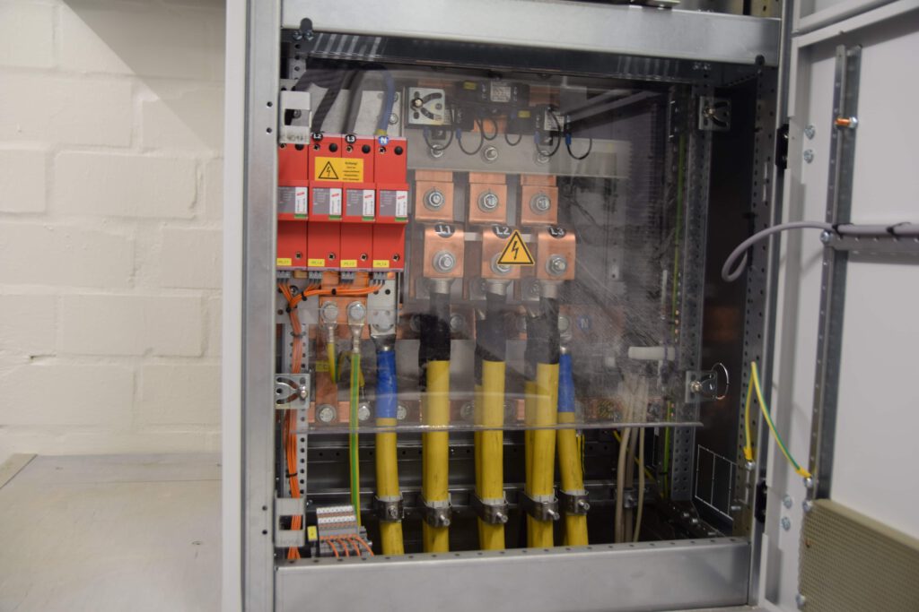 Eigentlich läuft in der Eymann Sauna im malerischen Amelsbüren alles schön entspannt. Doch den Experten von Elektro Heikes blieb leider keine Zeit für Wellness – sie waren schwer damit beschäftigt, die alte Mittel- und Niederspannungsschaltanlage zu demontieren. Installiert wurde eine komplett neue Anlage mit einem Druckentlastungssystem. Dabei wurden die Kabel von der bestehenden NSHV auf die neue NSHV umgeklemmt. Zudem wurde ein Doppelboden verbaut. Damit der Sauna zwischenzeitlich nicht der Saft ausging, kam eine provisorische Notstromversorgung zum