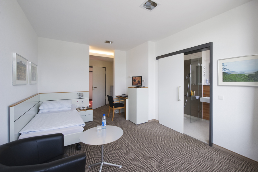 Die Klinik Königsfeld in Ennepetal am südlichen Rand des Ruhrgebiets ist ein modernes Zentrum für Rehabilitation der Deutschen Rentenversicherung Westfalen. Anschlussrehabilitationen und Leistungen zur medizinischen Rehabilitation können sowohl stationär als auch ganztägig ambulant durchgeführt werden. Es soll bunter, wärmer und freundlicher werden – in der Kurklinik, die wie ein Hotel sein soll: So lautet das erklärte Ziel. Um das zu erreichen, werden alle 183 Zimmer saniert. Aber immer nur sechs gleichzeitig, weil sonst der laufende Klinikbetrieb nicht gewährleistet werden kann.